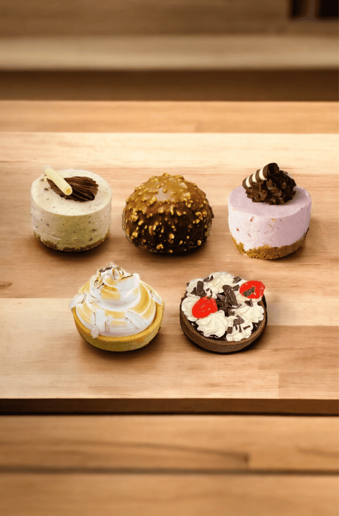 Black Forest / Lemon Meringue / Baileys C/cake / Raspberry C/cake / Praline Bavarois